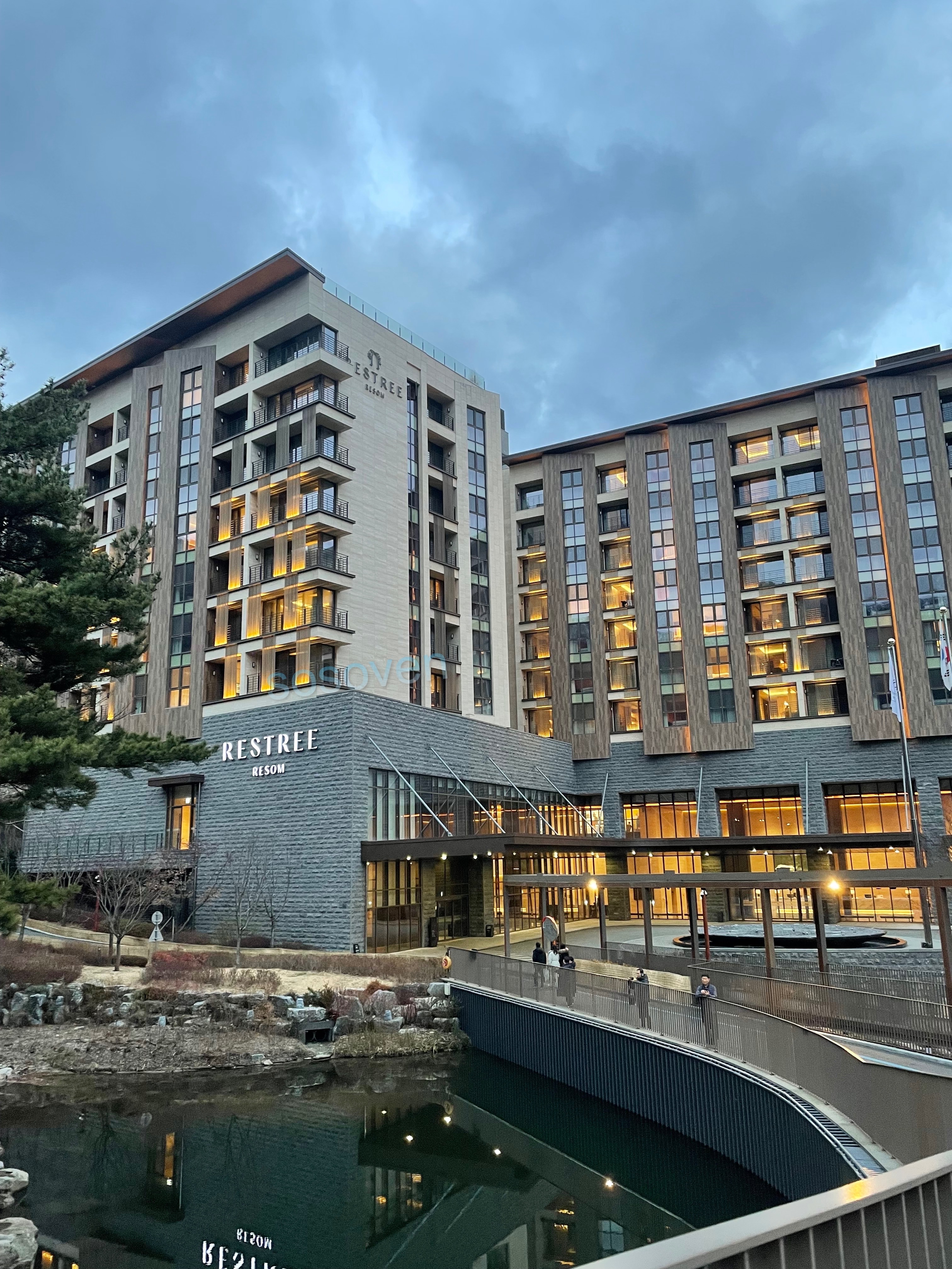 포레스트리솜 리조트의 핵심인 해브나인 스파는 별장 객실과 레스트리 중간에 위치하고 있습니다. 숙소에서 짐을 가지고 나와야하는 구조로 번거로울 수 있지만 가는동안에 주변 조경 또한 멋지게 조성이 되있어 그런 기분은 이내 사라집니다. 길따라 천장도 설치되있어 비나 눈이오는 날씨 걱정은 하지 않아도 괜찮습니다. 물놀이가 끝나면 꼭 주변 산책로와 조경을 구경하면 좋습니다. 특히나 밤에는 더욱 분위기 있으니 낮과 밤의 풍경과 운치를 즐긴다면 이번 여행지의 매력을 더욱 느끼게 될 것입니다. 모자는 입장시 필수로 착용해야 하며, 못 챙겼다면 입구에 수영용품샵이 있으니 걱정하지 않아도 됩니다. 아이들이 놀 수 있는 낮은 수심은 실내에 있고, 다른 실내 물놀이 할 수 있는곳보다는 인구 밀도가 낮은편입니다. 15시 넘어서 매점이 오픈하니 미리 가서 자리를 맡아 놓는 것도 좋은 방법입니다. 매점에 테이블도 스파로 되어있어 맥주 한 잔 먹으면서 휴식을 취하기 좋습니다. 야외에 있는 개별 스파 공간은 자리를 맡기가 힘드니 조금 일찍 움직이거나, 예약시스템이 운영된다면 미리 예약을 걸어놓는게 이용하기 편리합니다.